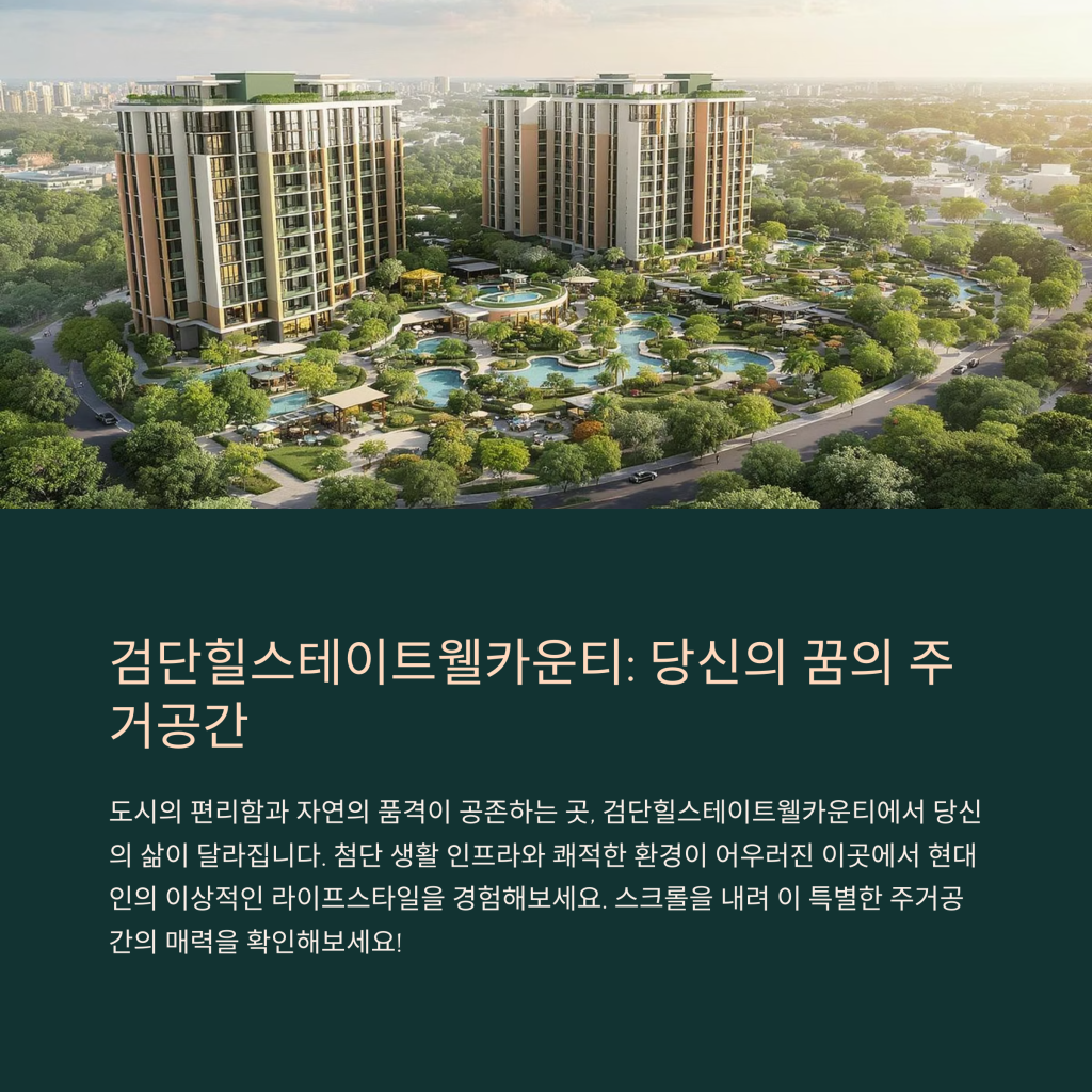 여러분이 찾고 있는 집, 바로 이곳입니다. 궁금하신가요? 첨단 생활 인프라와 쾌적한 환경이 어우러진 검단힐스테이트웰카운티에서의 삶은 과연 어떤 모습일까요? 분양 정보와 다양한 편의시설에 대한 이야기를 통해 이곳의 매력을 생생하게 소개해드릴게요.
