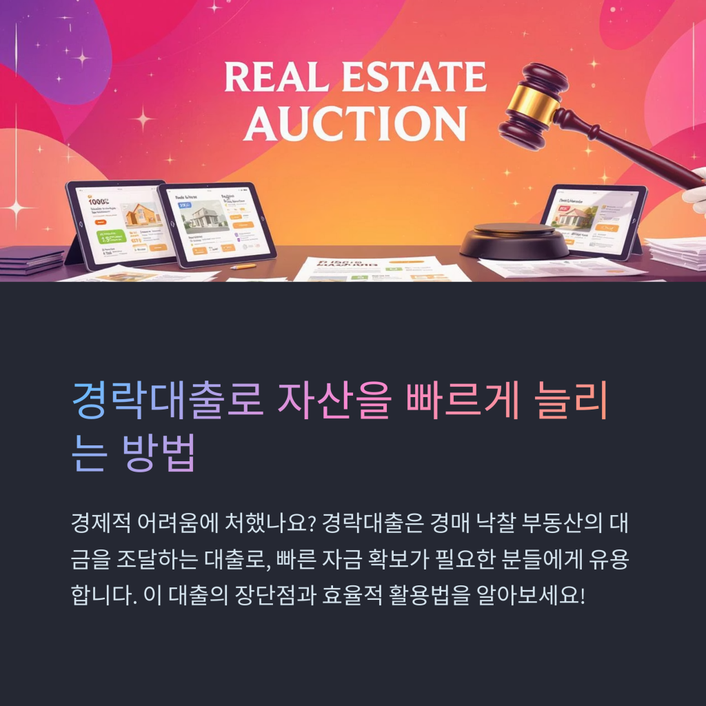 경제적 어려움에 처했나요? 많은 사람들이 고민하는 경락대출에 대해 알아보겠습니다. 경락대출은 경매에서 낙찰받은 부동산의 대금을 조달하기 위한 대출로, 빠른 자금 확보가 절실한 분들에게 아주 유용한 방법입니다.