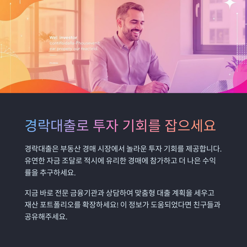 지금 바로 행동하여 경락대출의 혜택을 누리고, 재정적 미래를 확고히 하십시오!