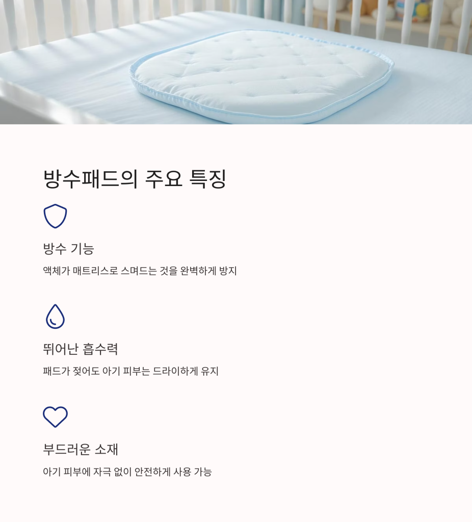 신생아방수패드의 다양한 기능과 장점을 통해 안전하고 건강한 수면 환경을 조성할 수 있습니다.