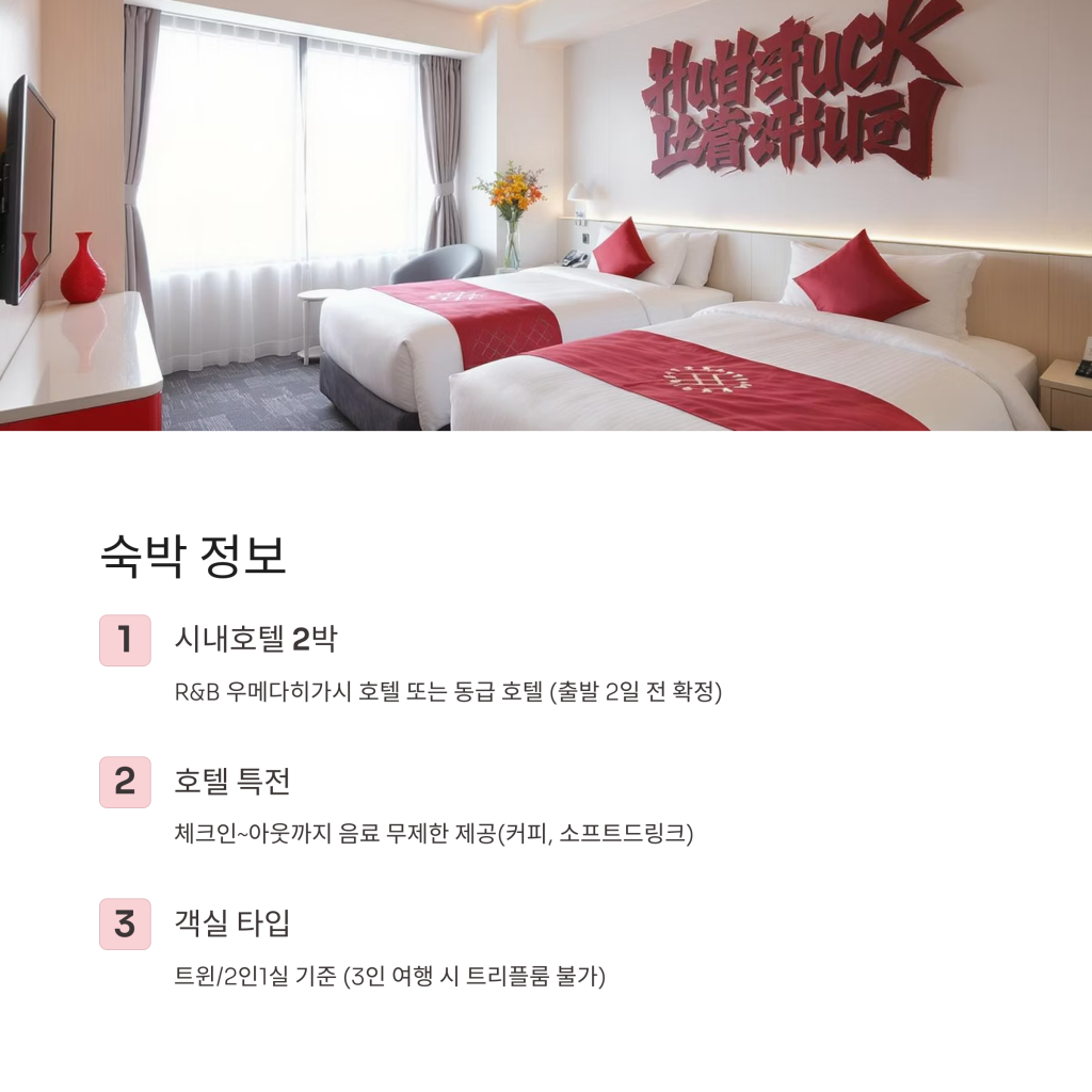 트윈/2인1실 기준 (3인 여행 시 트리플룸 불가)