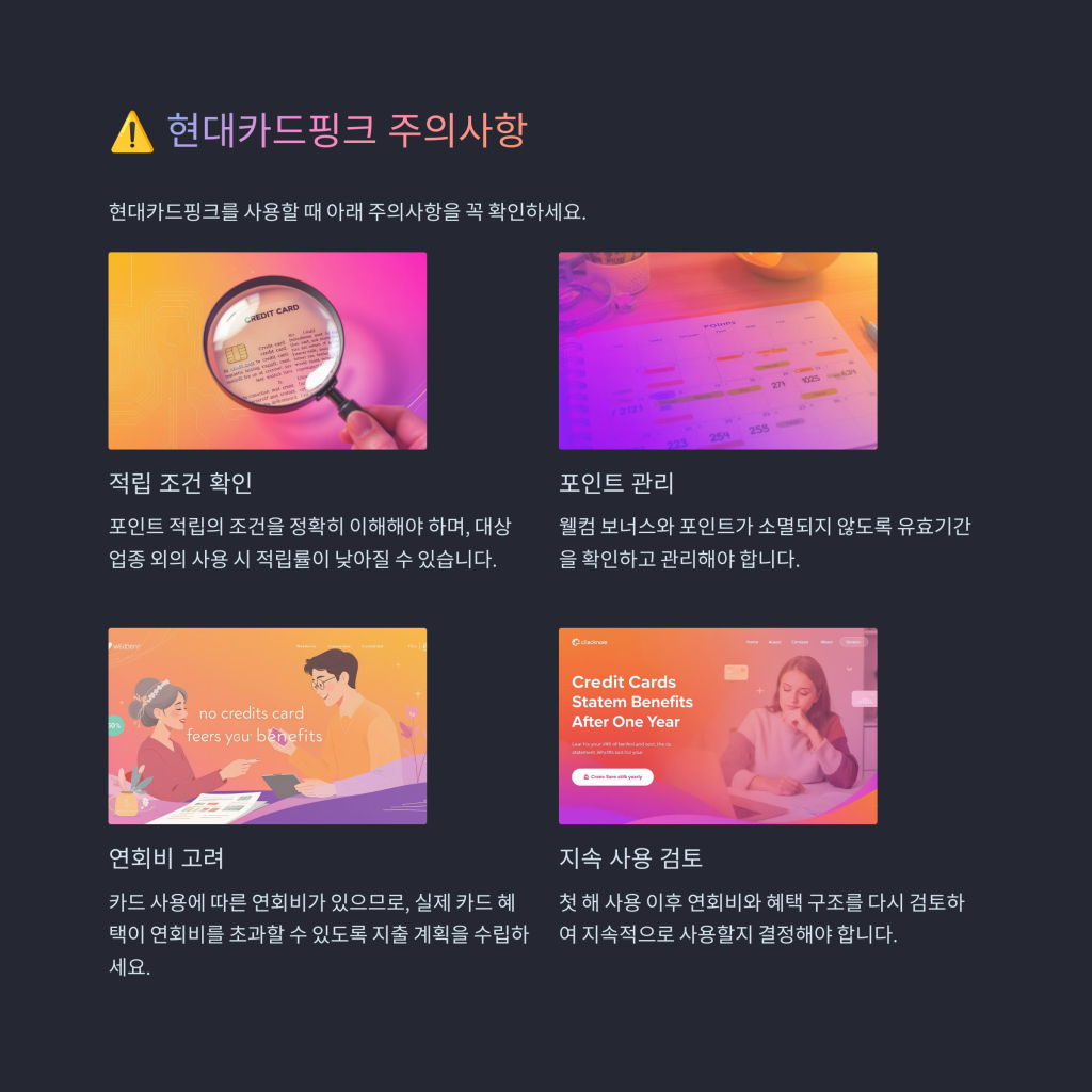 현대카드핑크 사용 시 주의해야 할 사항들이 있습니다.